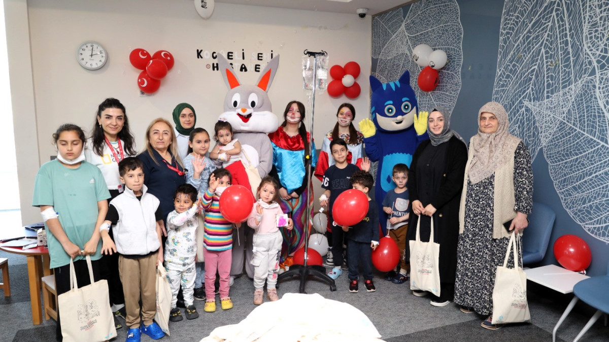 Kocaeli Şehir Hastenesi Onkoloji Bölümü Çocuk Polikliniğinde tedavi gören çocuklar, 23 Nisan’ın sevincini birlikte yaşadı. Büyükşehir Belediyesi tarafından organize edilen anlamlı etkinlikte, 70 çocuğa çeşitli hediyeler verildi, palyaçolar ve maskotlar onların yüzünü güldürdü.
