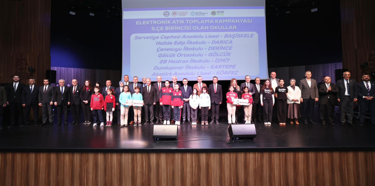 Vali İlhami Aktaş da çevre bilincinin önemine değinerek “Siz öğrencilerin geri kazanım bilinci büyük katkı sağladı. Hepinize teşekkür ediyoruz. Atık oluşmadan çözümler üretmek, sorunların önüne geçecektir. Umarım dünyanın daha temiz kalmasına katkı sunarsınız” dedi. Konuşmaların ardından, Kocaeli genelinde düzenlenen okullar arası elektronik atık toplama kampanyasında birinci olan Başiskele Servetiye Cephesi Anadolu Lisesi, Darıca Darıca Halide Edip İlkokulu, Derince Çenesuyu İlkokulu, Gölcük Ortaokulu, İzmit 28 Haziran İlkokulu, Kartepe Dumlupınar İlkokulu ve Körfez Atatürk Anadolu Lisesi öğrencilerinin ödüllerini Vali Aktaş ile Başkan Büyükakın takdim etti.