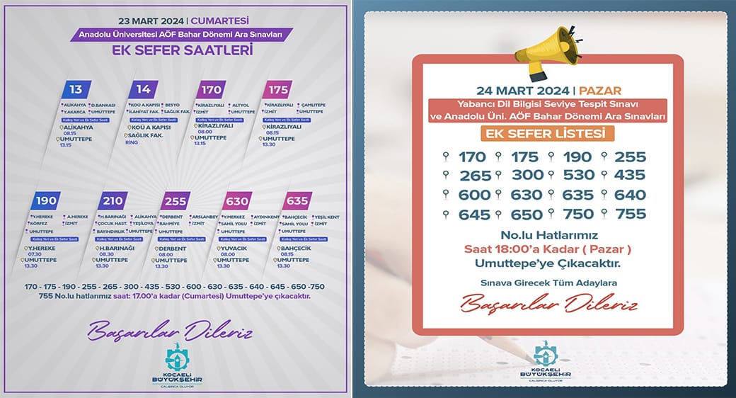 Ulaşım Ek Sefer Saatleri Bilgilendirme